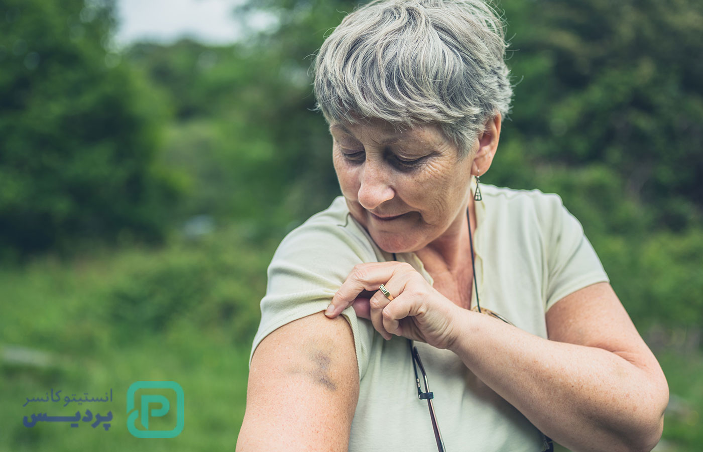 کبودیهای متعدد و بدون علت مشخص یا ایجاد لکههای قرمز و بنفش روی پوست (پتشی و پورپورا).